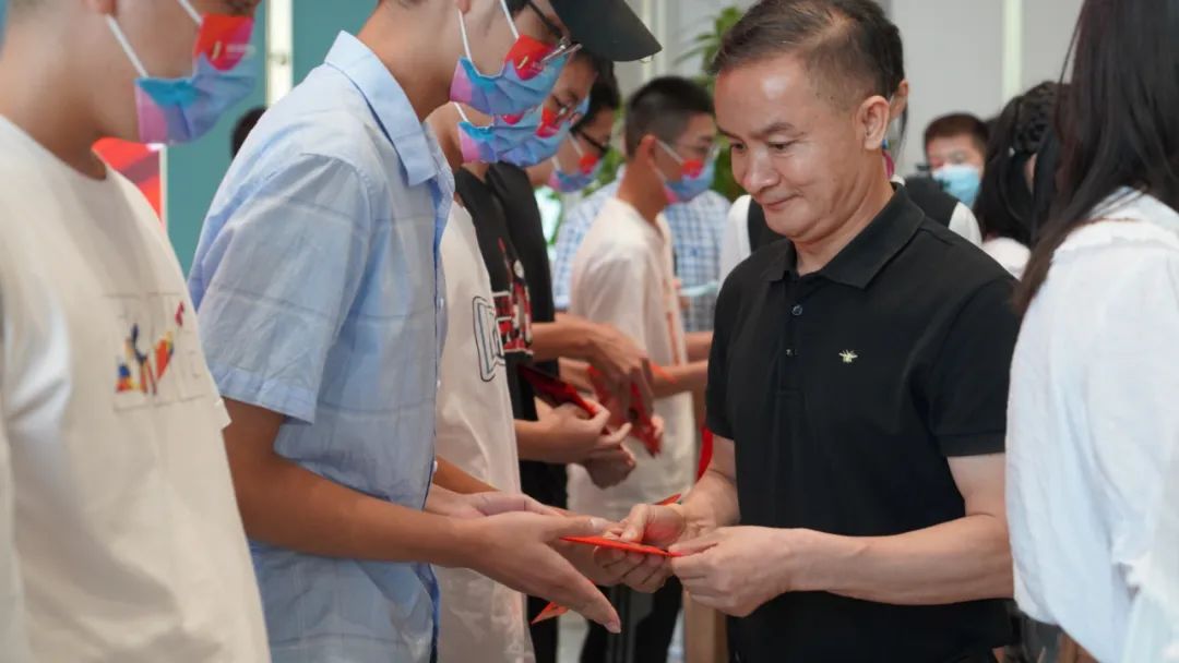最后,由目前入職的家樂園大學生員工代表張學正、史文斌和廖青川等作為“過來人”,結合自己在學校和在家樂園工作的親身經歷,為各位學子步入社會給出了真切的建議。學子們屏息凝神,認真聆聽,看著學子們一張張略顯稚嫩又認真嚴肅的臉龐,相信他們已經對自己的大學生活有了明確的規劃和目標。緊隨其后的就是激動人心的頒獎環節,家樂園集團董事長廖禮基親手為考取985、211和本一院校的學子們頒發了寄托著企業祝福與心意的5000元和3000元助學金。